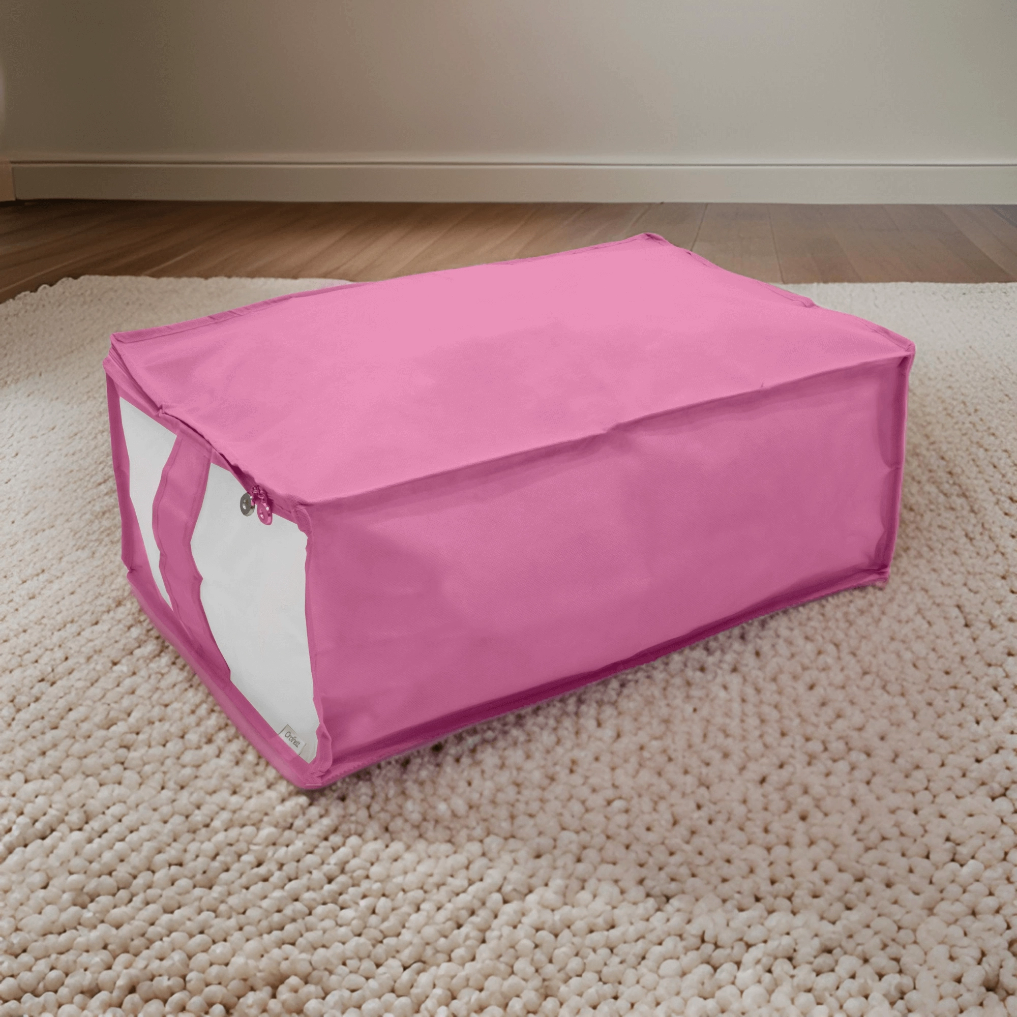 La scatola è realizzata in tessuto non tessuto solido e leggero, facile da trasportare e con buona stabilità della forma. La zip perimetrale semplifica il riempimento e l’estrazione, sia che tu riponga piumoni, lenzuola, giacche invernali o giochi per bambini.