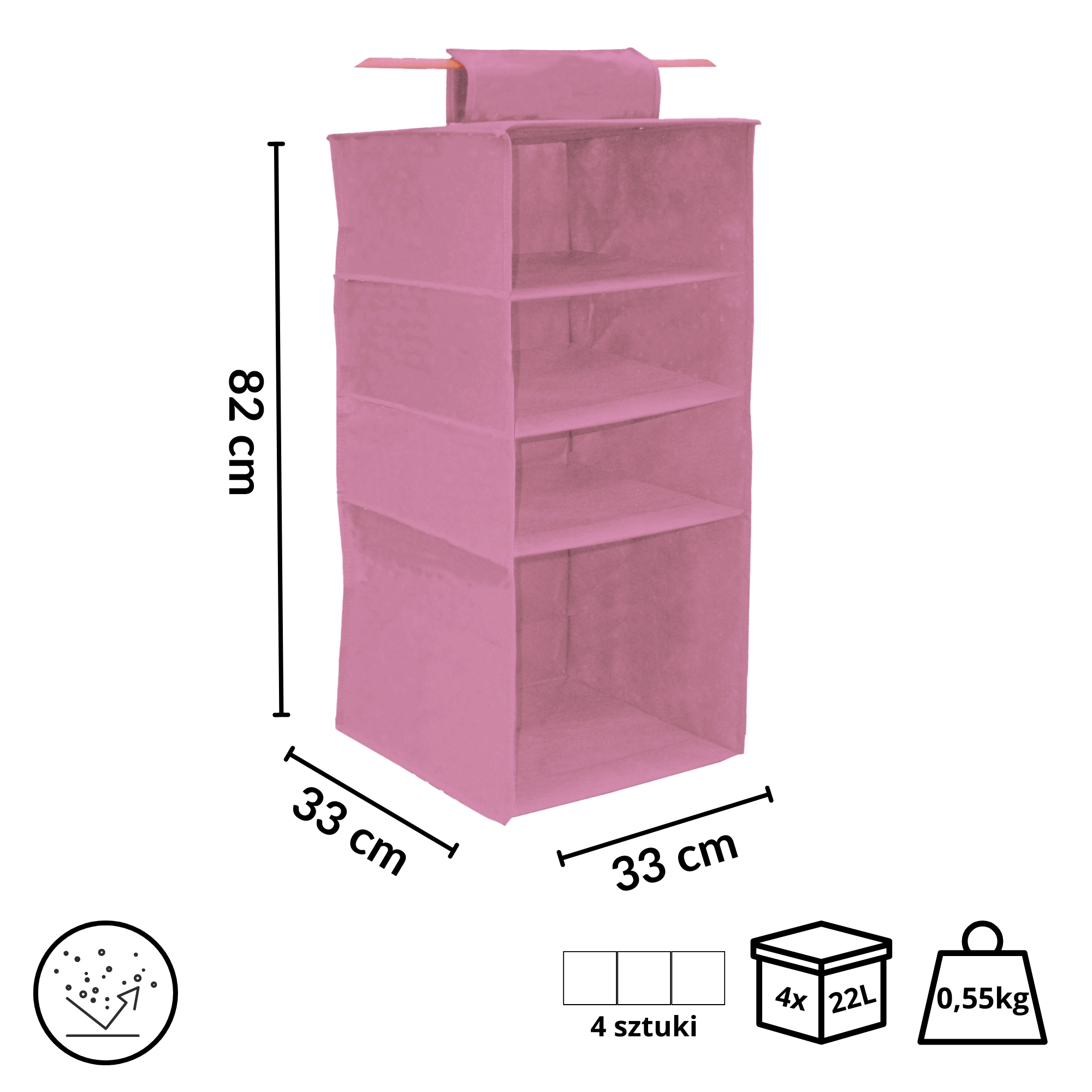 L’organizer sospeso Blossom per armadio è una soluzione intelligente per l’ordine di tutti i giorni. Grazie ai quattro ripiani aperti avrai subito una panoramica del contenuto e sfrutterai lo spazio inutilizzato sotto l’asta appendiabiti. La finitura rosa aggiunge un tocco fresco all’interno, restando neutra per diversi stili di arredamento.