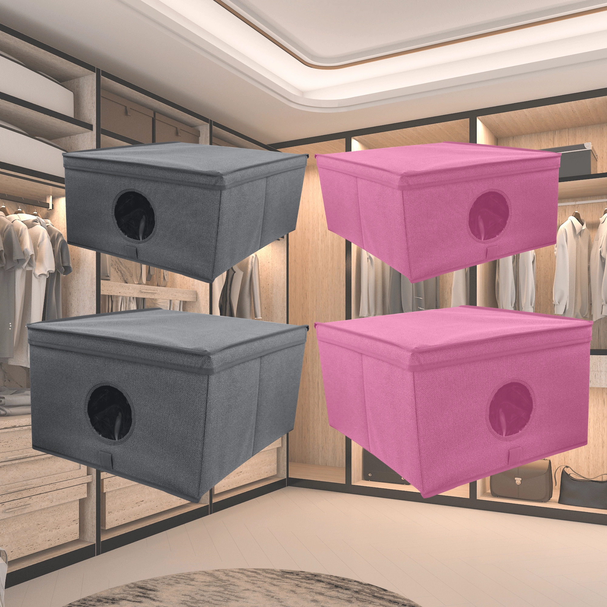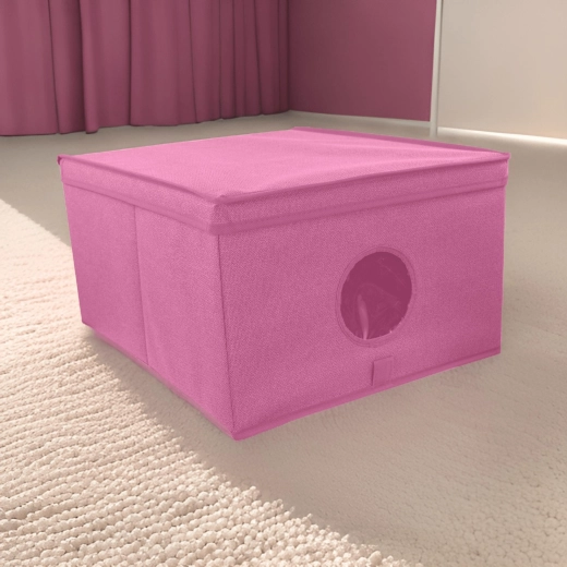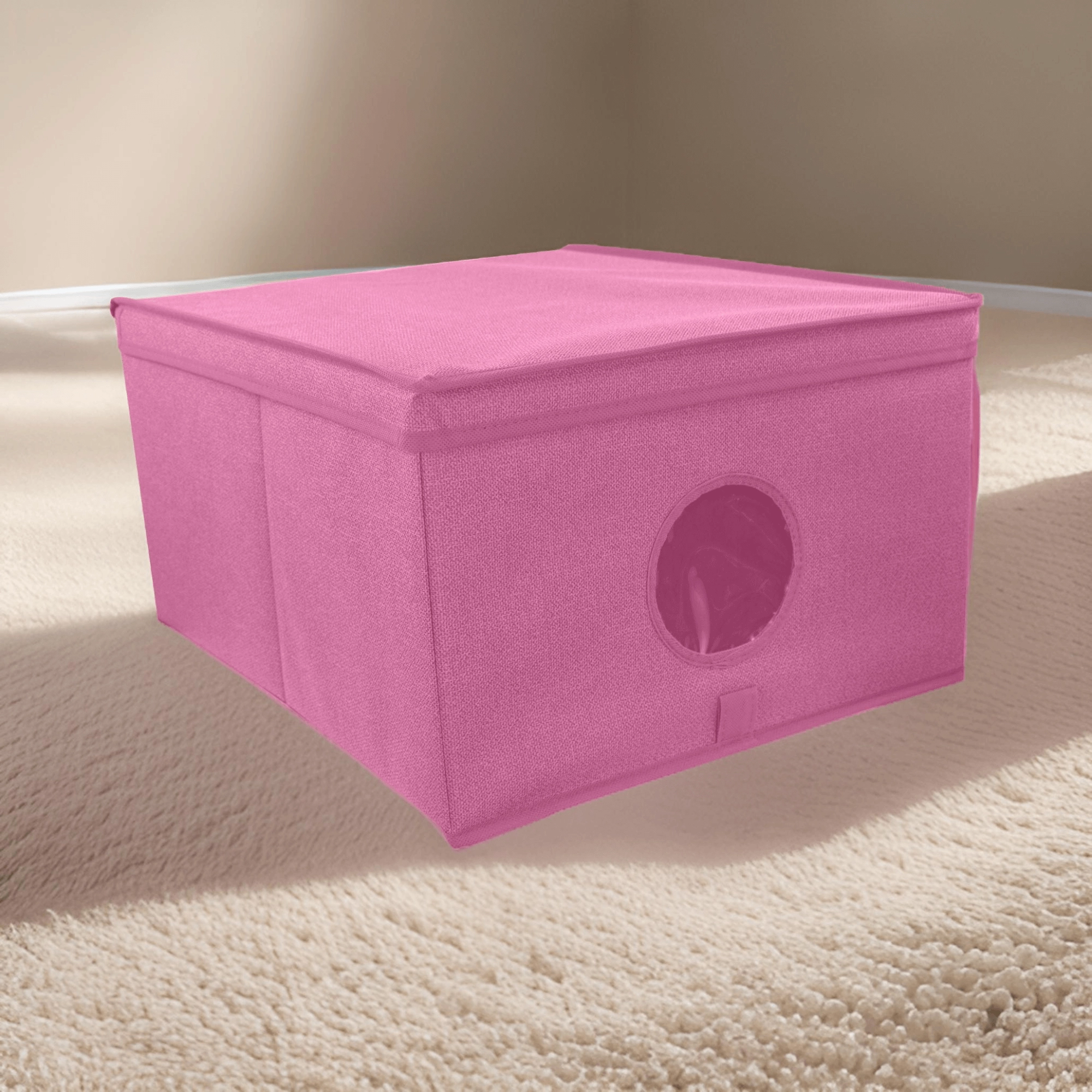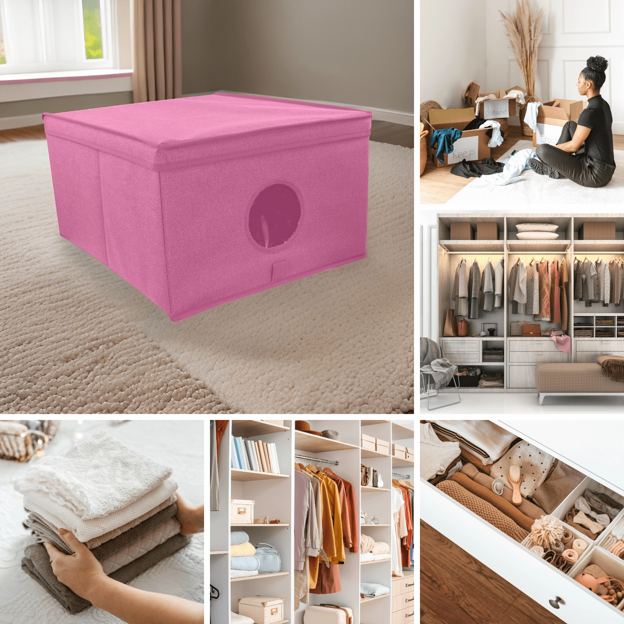Mantieni l'armadio e la casa perfettamente in ordine con questa scatola portaoggetti rosa con coperchio e finestra trasparente. Grazie alle dimensioni 50 × 40 × 25 cm, ospita comodamente abiti, biancheria da letto, giocattoli e accessori. La finestra trasparente permette di controllare rapidamente il contenuto, il coperchio protegge dalla polvere e la struttura pieghevole fa risparmiare spazio quando non utilizzi la scatola.