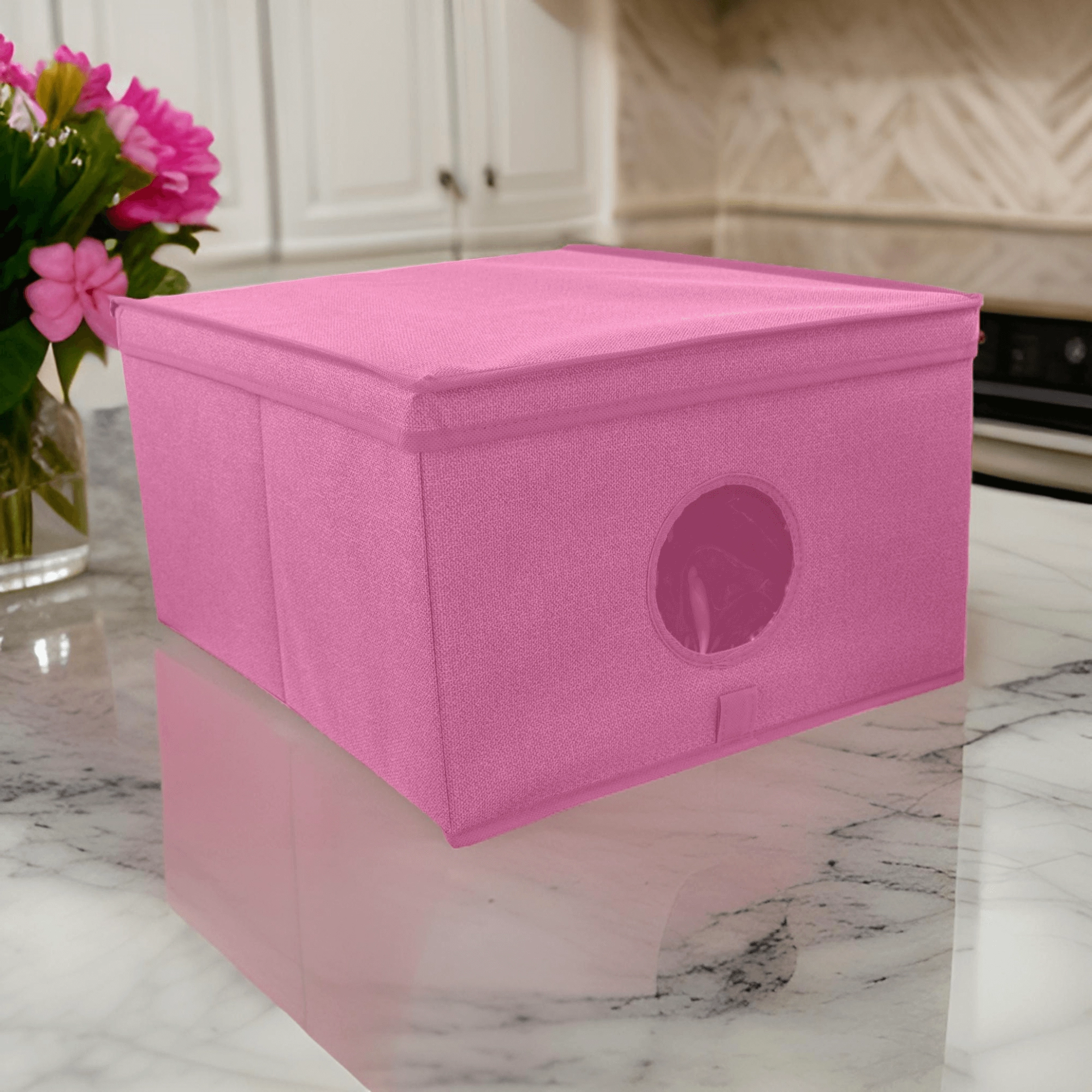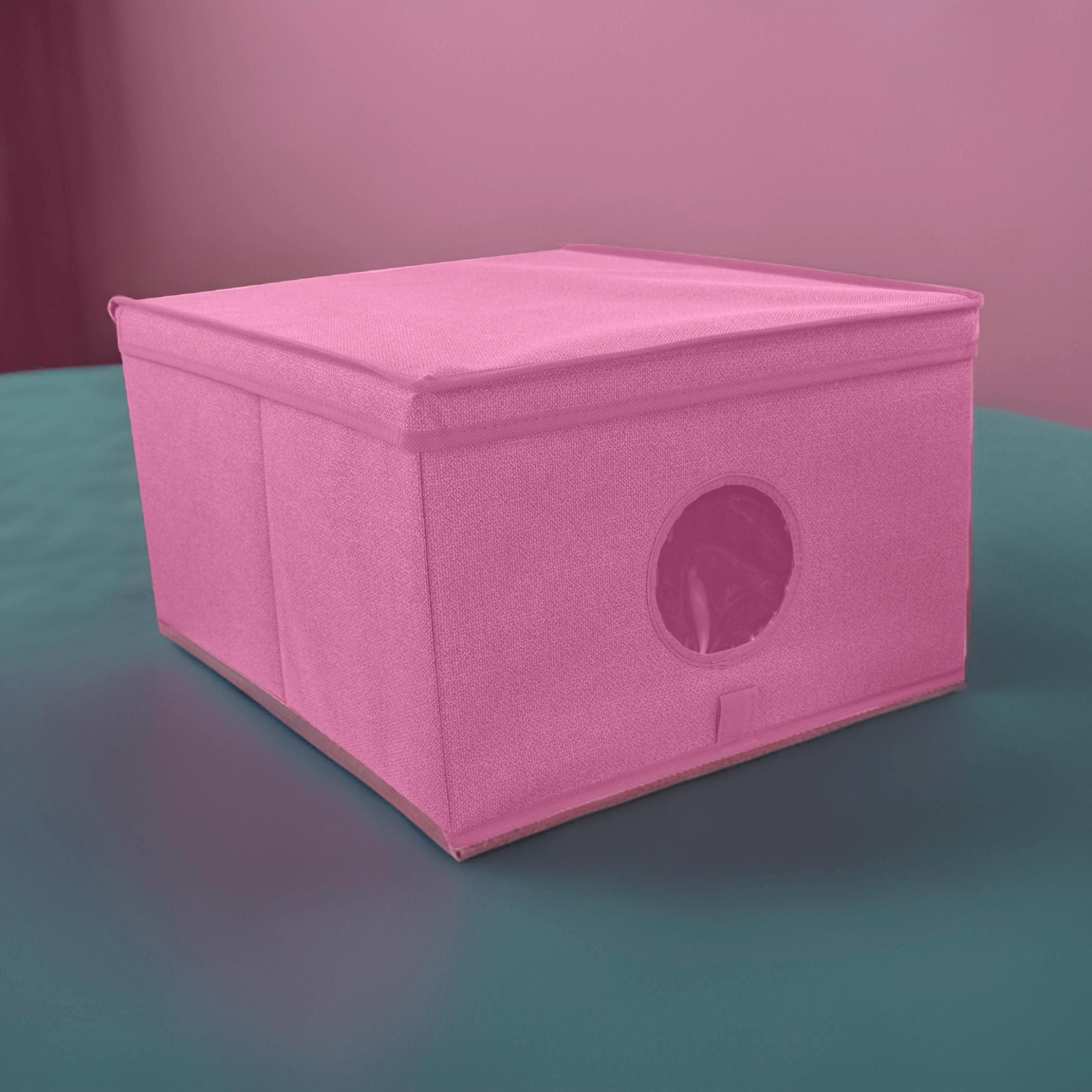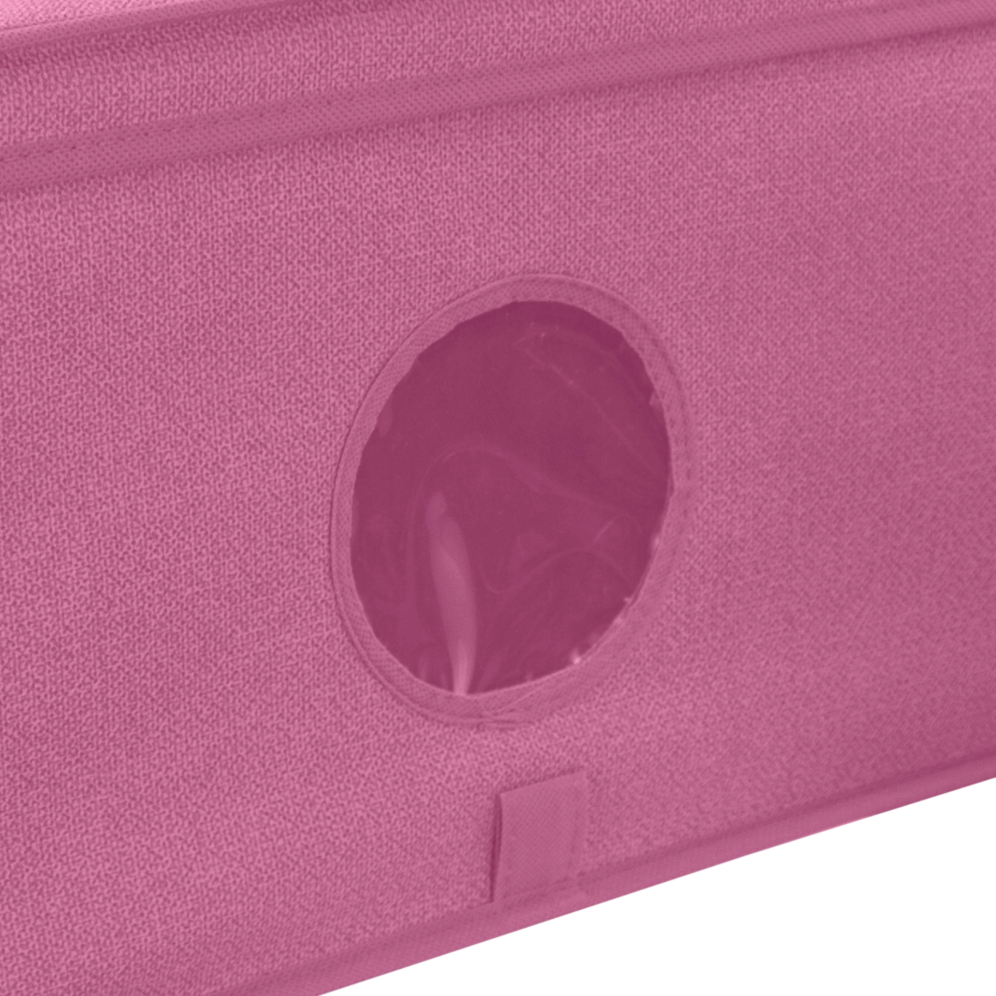 Aggiungi ordine e stile ai tuoi spazi contenitivi. La scatola in tessuto rosa con coperchio combina aspetto elegante e organizzazione pratica. La finestra trasparente frontale garantisce una visione immediata degli oggetti riposti senza dover aprire.