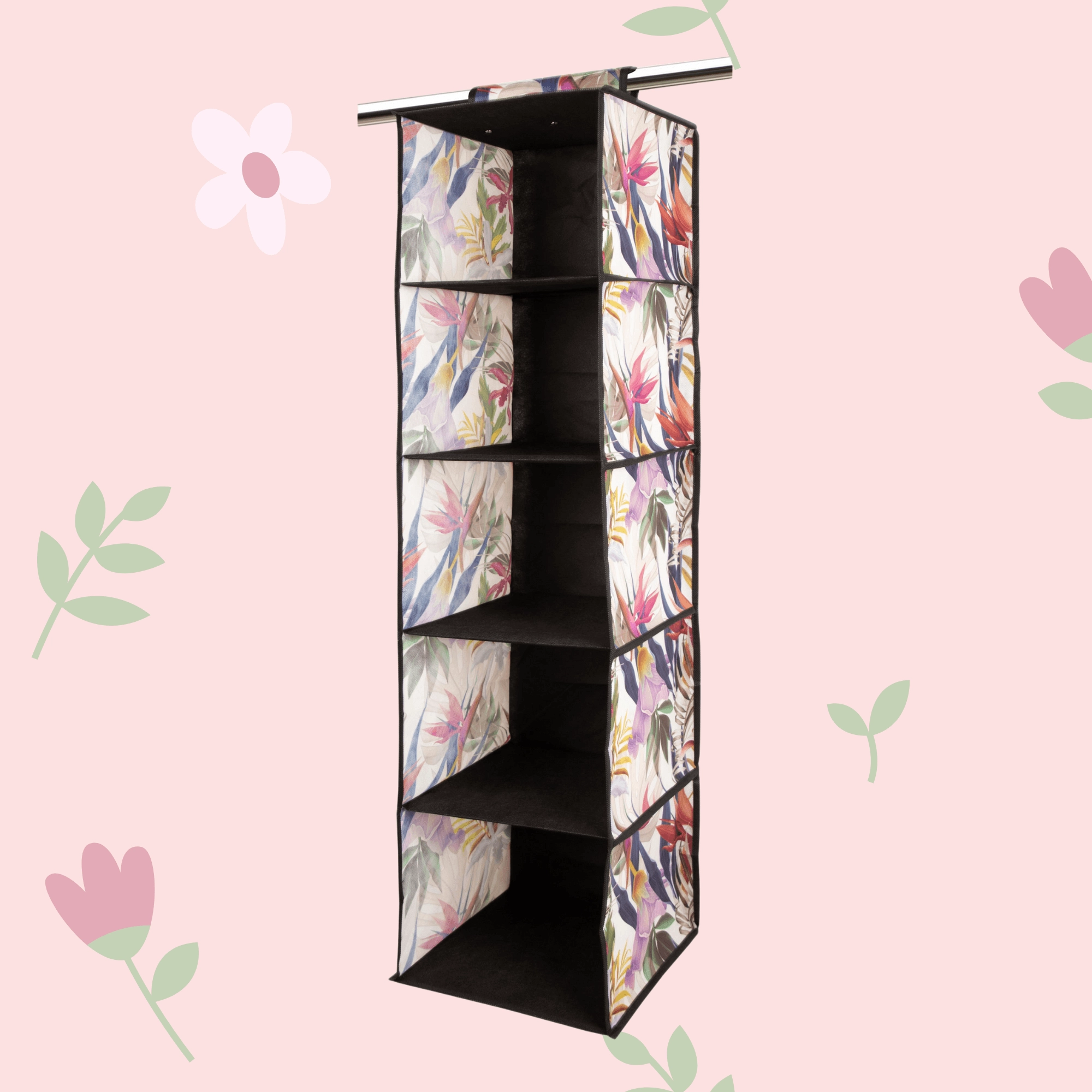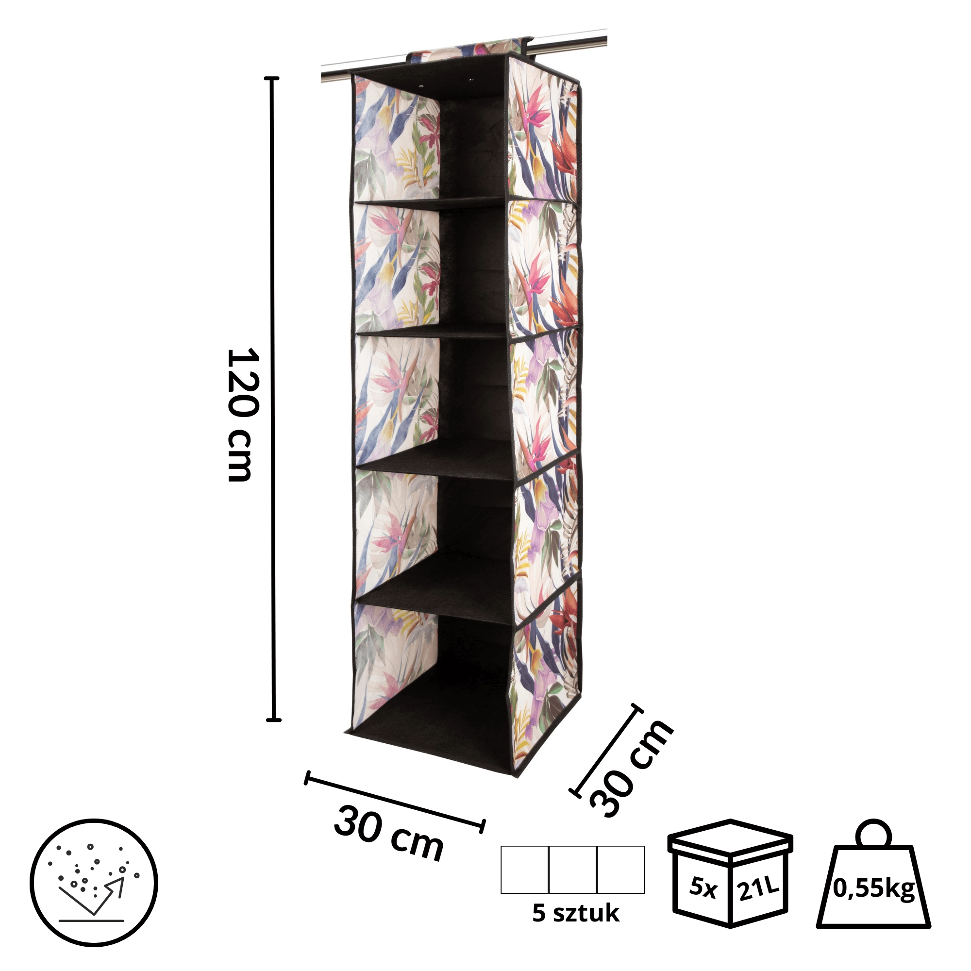 La stampa floreale laterale dona stile al guardaroba, mentre gli interni neri dei ripiani risultano puliti ed eleganti. Il materiale PET non-woven, robusto e leggero, richiede poca manutenzione ed è resistente alla normale usura.