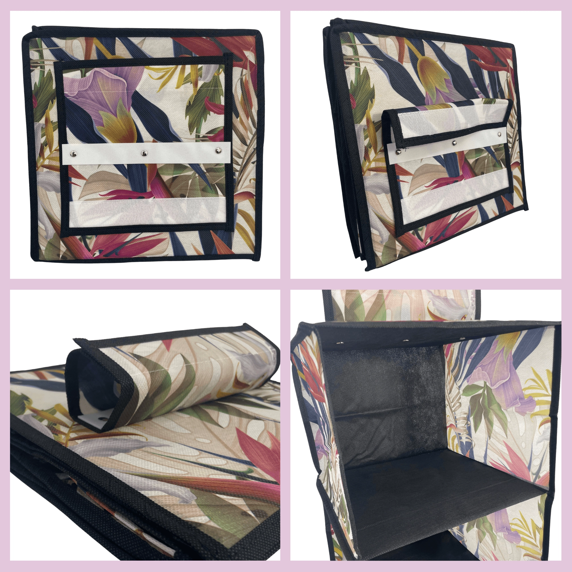 Il PET non-woven, leggero e robusto, resiste all’uso quotidiano, mentre il motivo floreale ravviva l’interno del tuo armadio.