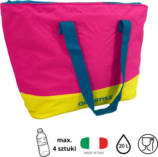 La borsa termica elegante e pratica GIO’ STYLE Kamai 20 l mantiene bevande e alimenti freschi più a lungo grazie al valido strato isolante termico. Offre un capiente volume di 20 litri, ospita bottiglie da 1,5 l in posizione verticale e dispone di una camera impermeabile per un trasporto sicuro. Il resistente poliestere 600D, il trasporto confortevole e l’elegante design italiano la rendono la scelta ideale per la spesa, i picnic e la spiaggia.