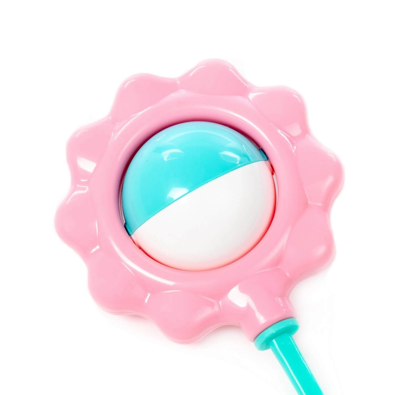 La sferetta centrale ruota durante il movimento e produce un lieve tintinnio, stimolando l’udito e invogliando il bambino al gioco.