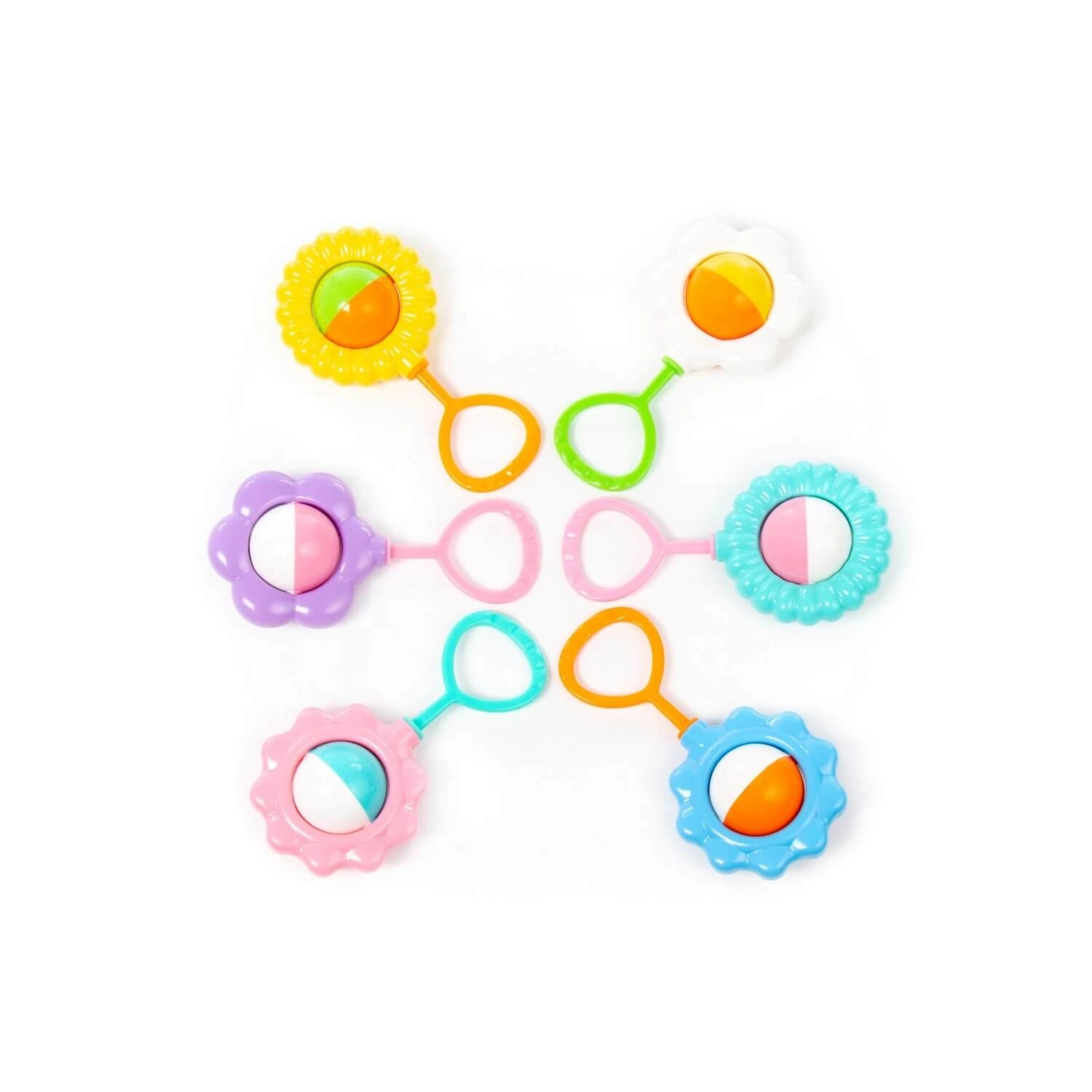 Allegri sonagli per bambini a forma di fiore che stimolano vista, udito e motricità fine. Grazie al design leggero e sicuro con anello ergonomico per la presa, anche le manine più piccole li tengono con facilità. Le diverse forme e colori invitano all’esplorazione e sono ideali per il gioco quotidiano a casa e in viaggio. Disponibili in 6 varianti differenti. Prezzo riferito a 1 pezzo.