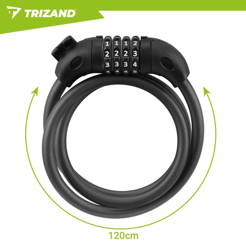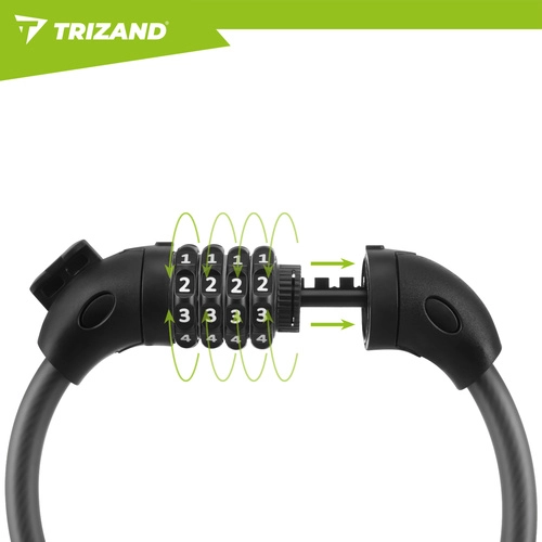 Il lucchetto per bici TRIZAND è una soluzione pratica e universale per la sicurezza di city bike, MTB, monopattini o passeggini. Il codice a quattro cifre reimpostabile offre comodità senza chiavi e un meccanismo fluido per un uso rapido. Il robusto cavo in acciaio da 13,5 mm con avvolgimento flessibile si avvolge facilmente attorno al telaio e a un punto fisso senza graffiare la vernice grazie alla guaina protettiva.