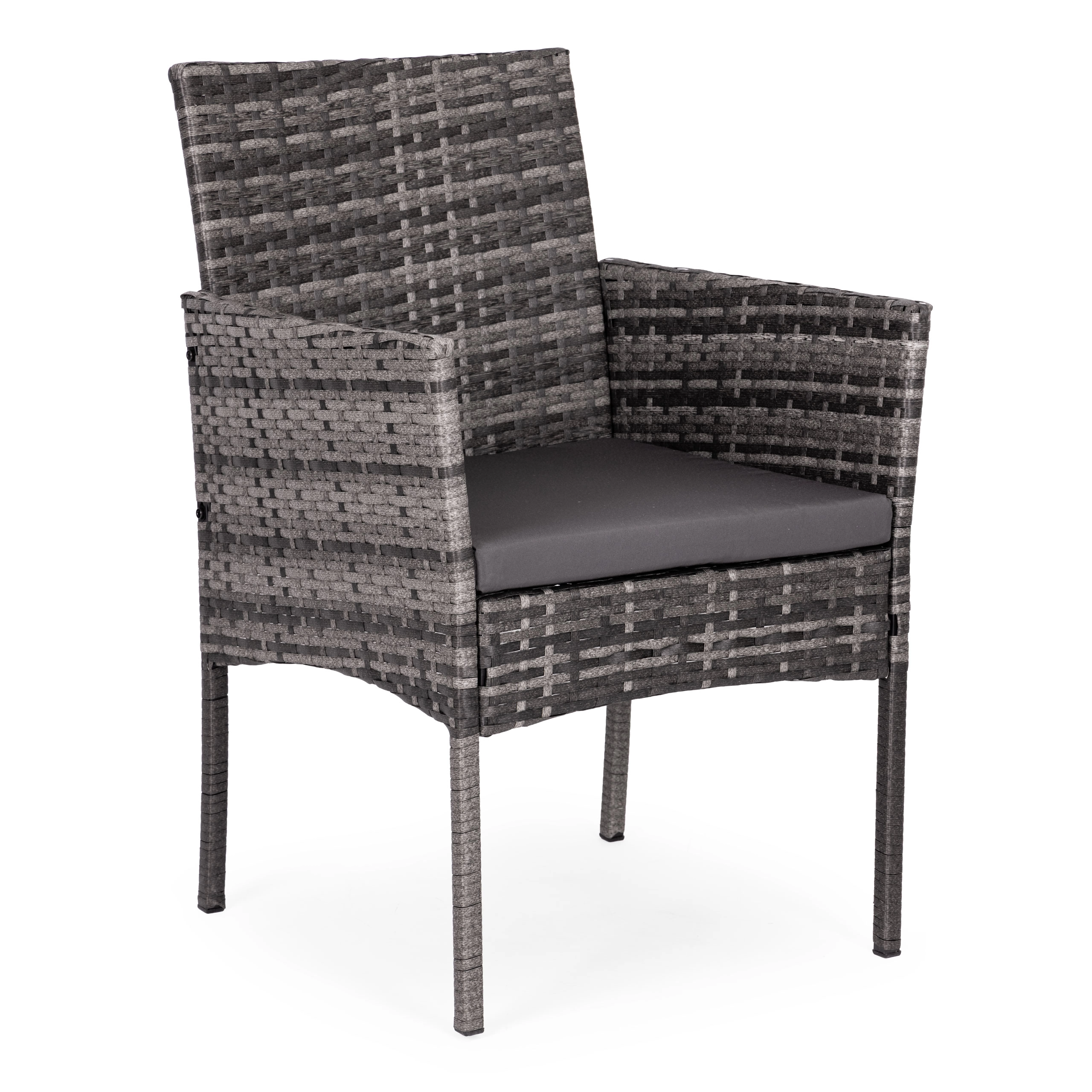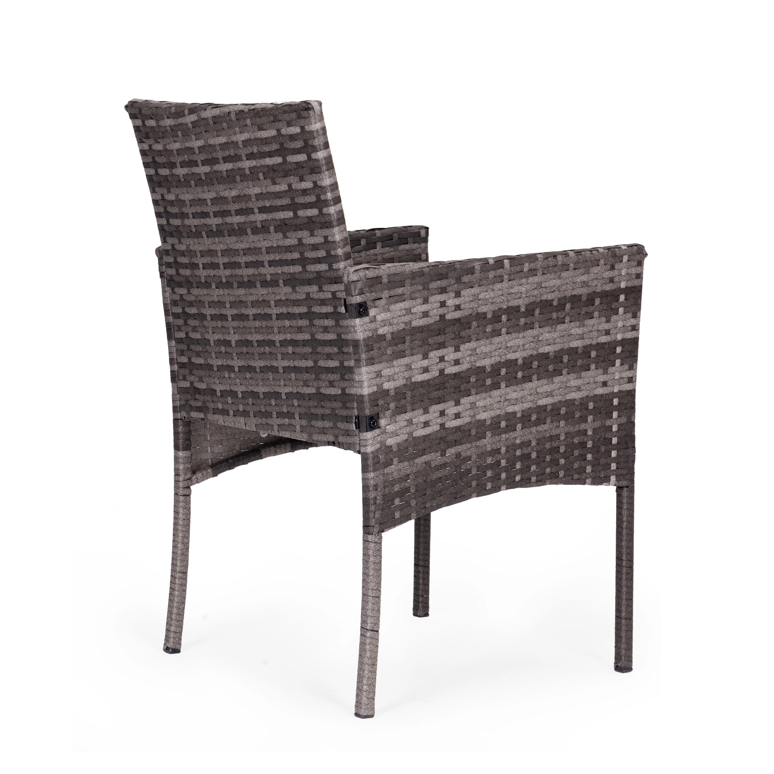 Il tecnorattan resiste ai raggi UV, all'umidità e agli sbalzi di temperatura. I piedini antiscivolo garantiscono stabilità e proteggono la superficie del pavimento.