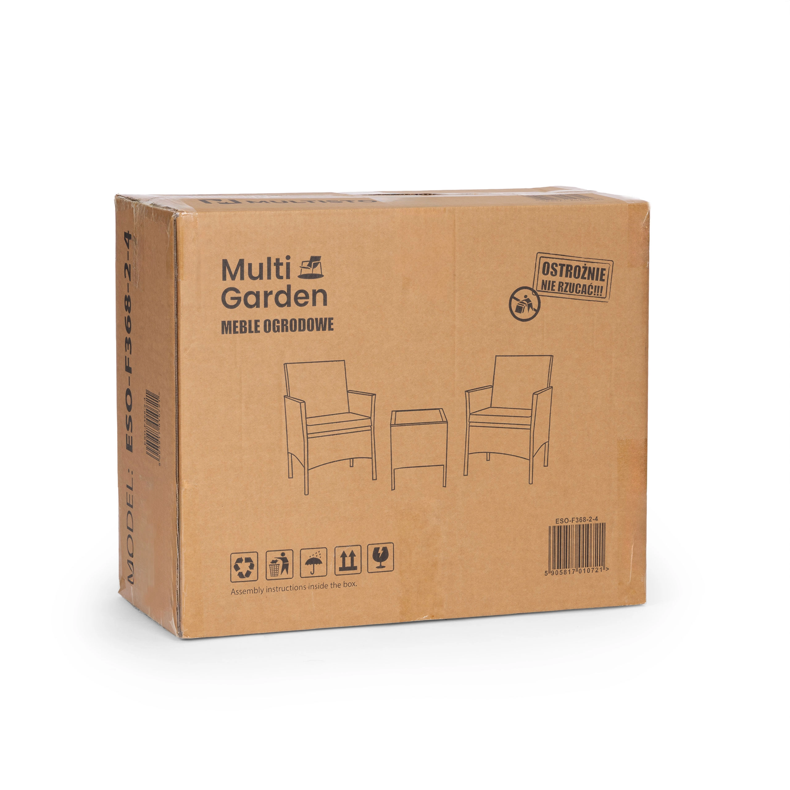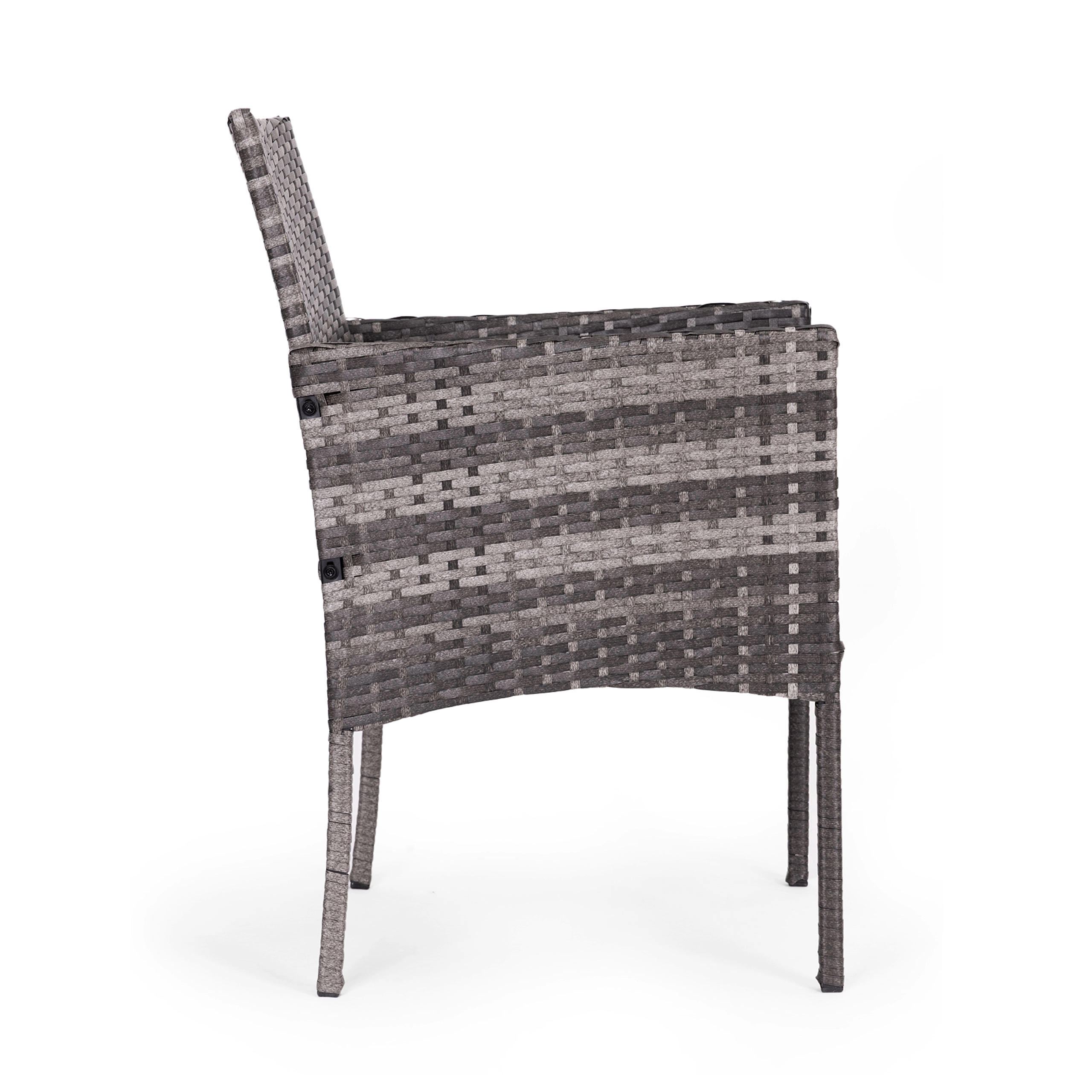 L'elegante set da giardino per 2 persone di MultiGarden combina una robusta struttura in acciaio e tecnorattan con vetro temperato sul tavolino. Include 2 comode poltrone con cuscini in poliestere 160 g/m². L'arredo è resistente alle intemperie, facile da pulire e perfetto per terrazza, balcone e giardino.