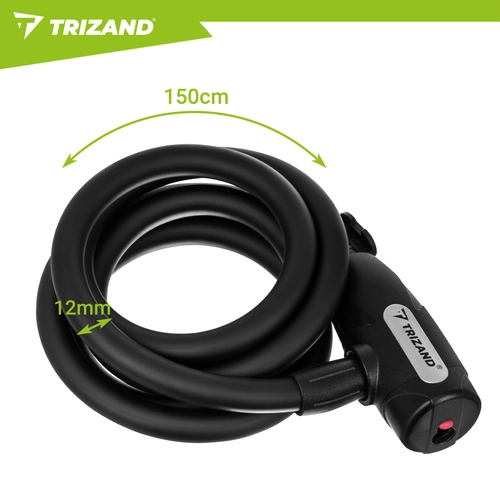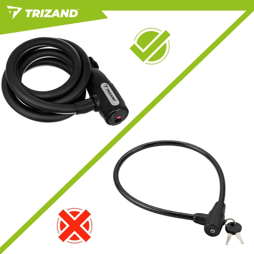 Lucchetto per bicicletta TRIZAND 150 cm, cavo in acciaio da 12 mm con chiave e supporto