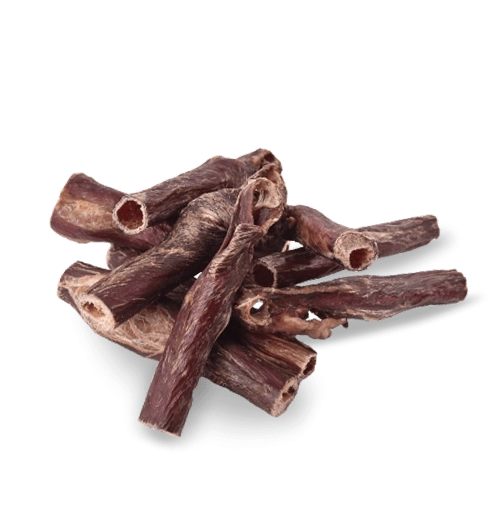 Snack naturale per cani al 100% di esofago di manzo essiccato, senza conservanti, coloranti e zuccheri. Favorisce la masticazione, pulisce i denti e massaggia le gengive, aiuta a prevenire il tartaro e contribuisce a una corretta digestione.