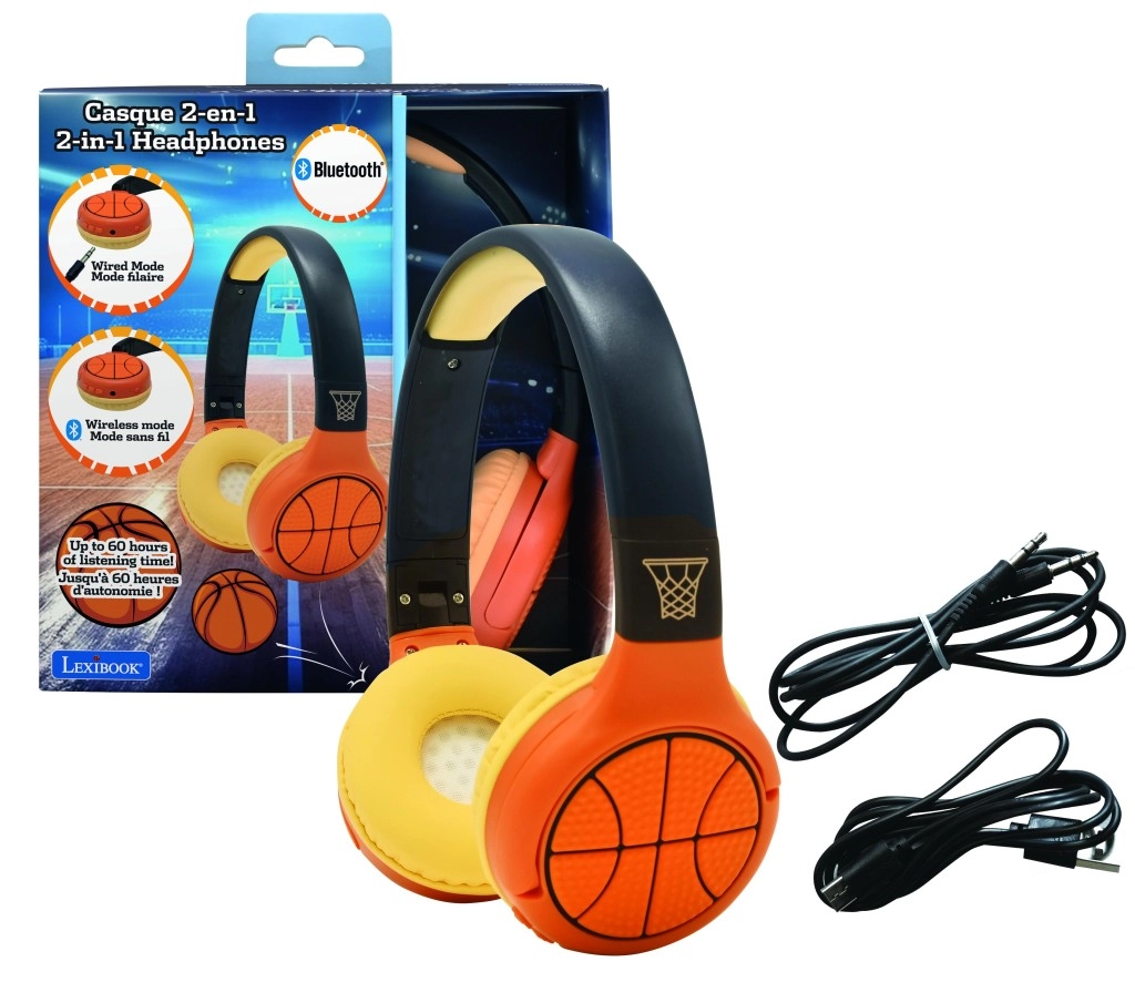 Regala ai bambini un ascolto divertente e sicuro. Le cuffie LEXIBOOK con motivo basket uniscono un design accattivante a funzioni pratiche per l’uso quotidiano. Grazie alla tecnologia Bluetooth funzionano in modalità wireless e, quando serve, basta collegare il cavo incluso con jack da 3,5 mm.