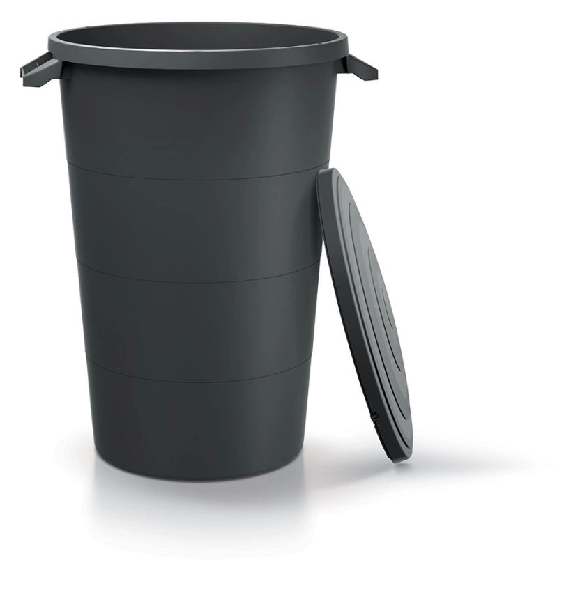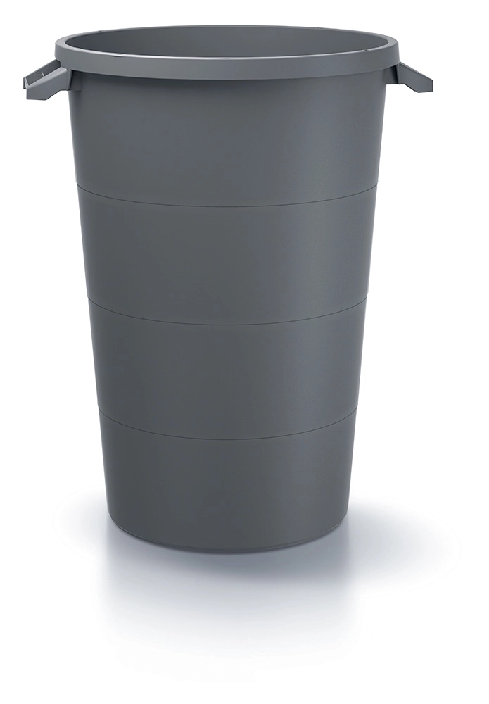 Grazie alla plastica resistente è indicato per diversi tipi di materiali: dai rifiuti organici e urbani a sabbia, mangimi o acqua piovana. Le pareti interne lisce facilitano la pulizia e impediscono l’adesione dello sporco. La forma cilindrica stabile con leggera rinforzatura garantisce lunga durata e facile impilabilità.