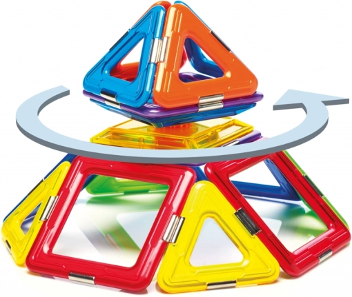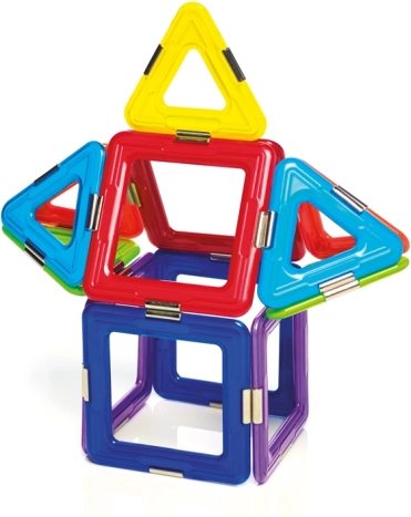 Il set include in totale 6 quadrati magnetici, 8 triangoli e 1 spinner, offrendo ampio spazio per esperimenti. Questo set non è solo divertente, ma anche educativo, sviluppando abilità come l'immaginazione spaziale, la coordinazione, la concentrazione e la creatività.
