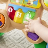 Pulsanti, lucine, ingranaggi, cursori e un libricino con il cagnolino sviluppano la motricità fine e insegnano la relazione causa-effetto. Musica e frasi motivano a nuove attività.