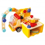 - Camion, figurina dell’autista, chiave, martelletto, cacciavite, pezzi da costruzione