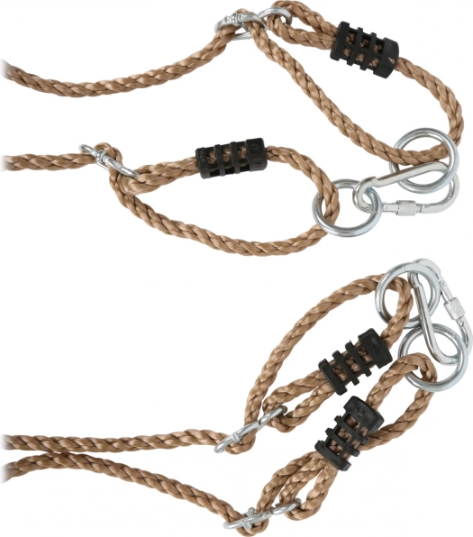 Robuste maniglie in legno sui cavi si regolano facilmente all’altezza ideale. Offrono sostegno per salire e per dondolarsi in piedi.