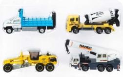 - Il set include i seguenti veicoli della collezione Matchbox Working Rigs: GMC 3500 Attenuator Truck, MBX Mobile Crane, Road Grader e Cement King.