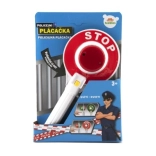 Questa paletta della polizia in plastica è dotata di una luce integrata che illumina di rosso su un lato e di verde sull'altro, insegnando ai bambini le basi del traffico stradale.