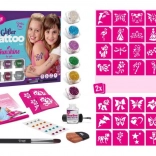 I set più grandi includono più strumenti: Occhi mobili/strass autoadesivi: potete decorare il disegno finito. Applicate una piccola quantità di colla per strass autoadesivi e premeteli sulla pelle.