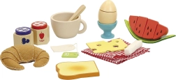 Concedi ai bambini una colazione giocosa con il magnifico set VILAC. Nella confezione trovi un uovo da intingere, toast, formaggio, croissant, 2 marmellate, tazza di tè con bustina e fette di anguria. Tutto è realizzato in legno di qualità e feltro per lunga durata e autenticità.