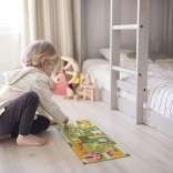 Grazie alle grandi tessere robuste, il puzzle è facile da comporre anche per i più piccoli. La produzione sostenibile in carta riciclata e la stampa con inchiostri a base vegetale garantiscono delicatezza verso i bambini e l’ambiente. Il puzzle completato misura 53 × 21,5 cm, perfetto per qualsiasi tavolo o pavimento.