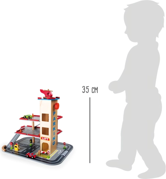 Grazie alla costruzione in legno resistente, il giocattolo è duraturo e a lunga durata. Le dimensioni del parcheggio sono 35x48x38 cm e sono adatte per bambini dai 3 anni in su.