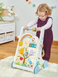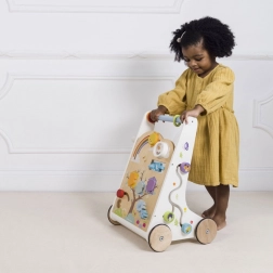 Il girello in legno con attività è concepito per essere non solo divertente, ma anche educativo. Con il suo aiuto i bambini imparano non solo a camminare, ma sviluppano anche le loro abilità sensoriali.