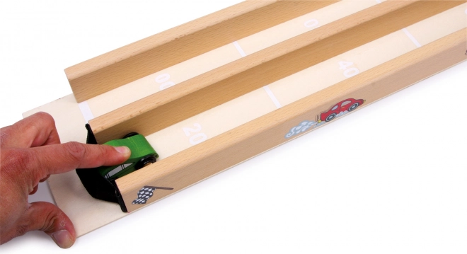 Pista di gara in legno offre divertimento con due veloci macchinine. Basta tendere la gomma, e le gare piene di emozioni possono iniziare!