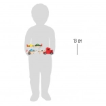 Attenzione, si carica! Questo robusto camion in legno con auto del marchio small foot trasporta fino a quattro macchinine sport contemporaneamente. Dispone di una piattaforma superiore mobile per un carico e scarico agevoli, di una sbarra di sicurezza anti-retromarcia e di una struttura resistente in legno e metallo – ideale per i piccoli appassionati di auto e per ogni pista delle macchinine.