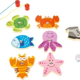 Nel gioco, i bambini catturano diverse colorate creature marine utilizzando due canne magnetiche. Il gioco è completato da un dado colorato che determina quale animale deve essere pescato. Tutto è confezionato in una pratica sacca in tessuto, ideale per i viaggi.