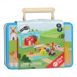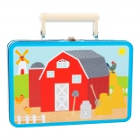 Il maialino fa oink, il trattore brontola. Un gioco portatile in una bellissima valigetta: i bambini possono creare la propria fattoria grazie alle figure di gioco in legno a forma di trattore, animali domestici e contadino. Per prima cosa componete la base con il puzzle e poi potete iniziare a giocare! Le balle di fieno in miniatura completano la fattoria alla perfezione. Immergetevi nella vita di campagna e lasciate libera la fantasia. La valigetta è in metallo robusto, il manico è in legno e la chiusura si apre facilmente. Ideale per camerette, sale giochi... Caratteristiche principali: contiene 12 pezzi di puzzle e figure di contadino, trattore, maialino, mucca, cavallino e balle di fieno; confezione pratica – valigetta in metallo con manico in legno