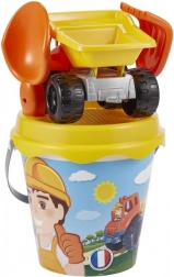 Divertente set da sabbia per piccoli costruttori composto da secchiello, setaccio, camioncino ribaltabile, rastrellino e paletta. Ideale per parco giochi e spiaggia, con diametro del secchiello di 17 cm e altezza di 18 cm.
