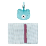 Un accessorio di viaggio elegante e funzionale per famiglie che amano partire spesso all’avventura. La custodia per documenti con una bella illustrazione di animaletti e motivi di viaggio conserva in sicurezza passaporti o tessere sanitarie, mentre l’etichetta a forma di orsetto aiuta a riconoscere rapidamente passeggino, borsa o valigia.