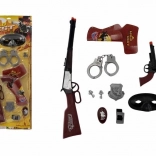 Divertente set per piccoli cowboy con pistola, manette e revolver per giochi fantasiosi nel Selvaggio West. Ideale per travestimenti e avventure in casa. Stimola la creatività, il gioco di ruolo e il divertimento sicuro.