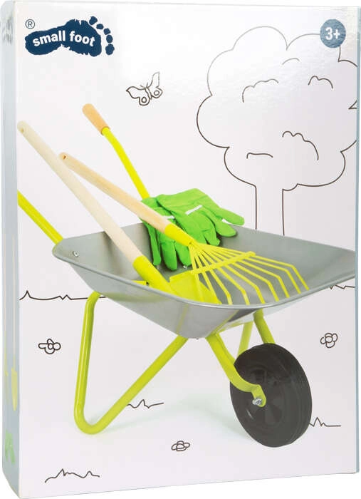 Scoprite il set da giardinaggio per bambini SMALL FOOT di alta qualità con carriola in metallo, pala, rastrello e guanti in cotone – ideale per i piccoli aiutanti in giardino. Il set è realizzato prevalentemente in metallo, è robusto, sicuro e offre grande divertimento durante i veri lavori di giardinaggio. Struttura in metallo stabile, carriola ca. 10 l / portata fino a 15 kg e impugnature ergonomiche in legno favoriscono una manipolazione facile e lo sviluppo delle abilità dei bambini.