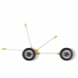 L'auto è realizzata in materiale plastico leggero e resistente, ideale per l'uso all'esterno. Il design semplice e le grandi ruote nere permettono una facile manovrabilità e forniscono un meccanismo di propulsione che è il cuore di questo dispositivo intelligente.