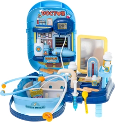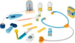 Il set da dottore include tutti gli strumenti necessari per il gioco del dottore, come lo stetoscopio, il termometro, la siringa e altro ancora.