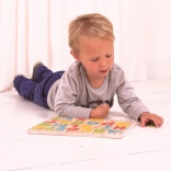 Questo alfabeto in legno con immagini è un giocattolo educativo ideale per i bambini in età prescolare. I piccoli imparano a riconoscere le forme delle lettere e il loro ordine corretto mentre allenano la motricità fine inserendo i pezzi nella tavola. All’interno di ogni lettera si trova un’immagine a tema di un animale che inizia con quella lettera, favorendo il vocabolario e un apprendimento naturale.