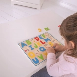 Inserire le lettere negli appositi incastri allena la presa, la coordinazione occhio–mano e la capacità di concentrazione.