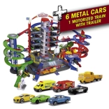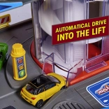 La grande autorimessa da gioco, larga quasi 1,30 m, è la novità più grande nel mondo Majorette! Il garage è composto da sette aree di gioco e offre fino a 35 posti auto e spazi di stoccaggio. Il cuore della stazione è un ascensore a spirale motorizzato che trasporta contemporaneamente fino a nove macchinine in metallo. Una volta in cima, deviatori automatici distribuiscono i veicoli in quattro diverse corsie. Sei diversi effetti luminosi e sonori, nonché innumerevoli stazioni di gioco come la stazione ferroviaria, la stazione di servizio con pompa di benzina, l’officina e l’autolavaggio, la caserma dei pompieri, la stazione di polizia con rifugio segreto e l’eliporto, offrono divertimento senza limiti. Inclusi 6 veicoli in metallo, treno a batteria, scambi automatici, galleria con funzione incidente e 2 ascensori motorizzati. L’elicottero non è incluso. Dimensioni assemblato: 128 x 78 x 73 cm.