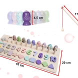 Gioco educativo in legno 2 in 1: incastro forme, abaco e pesciolini magnetici