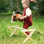 Il cavallino di peluche su bastone Nico è il compagno ideale per i piccoli cavalieri. La morbida testa in peluche con briglie e redini invita al gioco di fantasia, mentre il bastone in legno con maniglie stabili e ruote garantisce un movimento comodo e fluido sul pavimento e all'aperto. I bambini vivranno un'esperienza ancora più autentica grazie all'effetto sonoro: premendo le orecchie, il cavallino nitrisce allegramente.