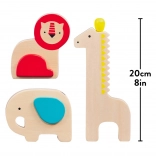 Con questa allegra squadra di animaletti, i bambini scoprono i primi ritmi e suoni. Il güiro a forma di giraffa con raschietto produce i tipici toni fruscianti, e le due maracas a tema elefante e leone sostengono il ritmo in modo divertente. Il set è ideale per suonare insieme, sviluppare la coordinazione mano-occhio e una naturale sensibilità musicale.