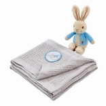 Questo incantevole set ispirato ai racconti di Beatrix Potter delizierà ogni neonato e i suoi genitori. Il morbido peluche CONIGLIETTO PIETRO con l’iconico cappottino blu è un ottimo compagno per coccole e gioco, mentre la copertina 100% cotone lavorata a maglia offre calore e comfort a casa e in viaggio.