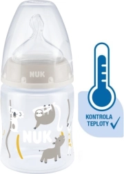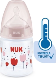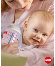 Il controllo della temperatura aiuta i genitori a raggiungere la temperatura ottimale e a garantire un’alimentazione sicura del loro bambino. Alimentazione tranquilla e sicura grazie al controllo della temperatura. Quando il bambino ha fame, il contenuto del biberon non dovrebbe essere né troppo caldo né troppo freddo. Per questo mamme e papà controllano la temperatura prima di ogni pasto. Non è facile capire quando la temperatura è quella giusta. Per questo sono stati sviluppati i biberon NUK First Choice+ con funzione di controllo della temperatura, una novità in questa forma. I biberon NUK First Choice+ sono ora dotati di un nuovo indicatore di temperatura che aiuta a evitare che il bambino beva una pappa troppo calda. L’indicatore, simile a un termometro, è posizionato tra le tacche e cambia colore in base alla temperatura del contenuto. Questa funzione aiuta i genitori a raggiungere la temperatura ottimale durante l’alimentazione del loro bambino. Se la pappa è troppo calda, l’indicatore blu diventa bianco. Idealmente, la pappa dovrebbe avere la temperatura corporea (37 °C), corrispondente alla colorazione blu del display. Attenzione: il controllo della temperatura è pensato come verifica aggiuntiva. Prima dell’alimentazione è necessario controllare la temperatura anche manualmente. Per verificarla, consigliamo di far cadere alcune gocce dell’alimento sull’interno del polso. La tettarella più naturale per il tuo bambino. Da molti anni, i biberon First Choice sono la prima scelta per un’alimentazione al biberon ispirata all’allattamento. Con First Choice+ ci siamo avvicinati ancora di più alla natura: favoriscono il sano sviluppo della mascella e offrono al bambino la sensazione di bere dal seno materno. Naturalmente e correttamente sagomata per la mascella. L’esclusiva forma delle tettarelle NUK è modellata sul capezzolo della madre durante l’allattamento. La tettarella lascia spazio sufficiente ai naturali movimenti di suzione della lingua e della mascella del tuo bambino. Morbida come il seno materno. La tettarella in silicone, grazie alla nuova zona morbida, si adatta meglio al palato del tuo bambino, garantendo una sensazione naturale durante la poppata. Previene le coliche Il migliorato sistema Anti-Colic Air System garantisce un flusso uniforme dell’alimento senza ingestione d’aria. Clinicamente testato* Grazie alla forma eccezionalmente naturale della tettarella, i bambini la accettano molto bene. Ciò le rende particolarmente adatte ai bambini che vengono contemporaneamente allattati al seno e alimentati con il biberon. Biberon per neonati. pratico display NUK di controllo della temperatura, che cambia da blu (freddo) a bianco (troppo caldo) privo di sostanze nocive e odori – senza BPA facile da riempire e pulire – collo extra largo presa sicura e stabilità – grazie alla bottiglia leggermente sagomata e alla base larga combinazioni illimitate – compatibile con tutti i prodotti NUK First Choice *Studio scientifico: Moral et al. BMC Pediatrics 2010, 10:6. Maggiori informazioni su http://nuk.com/research. Indagine di mercato indipendente con 205 pediatri, Germania 2018. Il 99% delle madri ha confermato che il biberon NUK First Choice+ Control non causa coliche. Caratteristiche principali: la temperatura del contenuto cambia il colore dell’indicatore: se il pasto è troppo caldo, il blu diventa bianco ideale per la mascella del bambino, tettarella in silicone particolarmente morbido, 0–6 mesi M (foro medio = per alimenti per l’infanzia) clinicamente testato*: per un’ottimale combinazione di allattamento al seno e biberon design accattivante