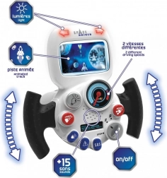- Interattività: volante elettronico con circuiti animati e display luminoso.