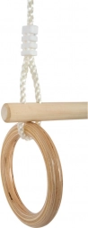 Questa sbarra di legno con anelli da ginnastica permette una varietà di esercizi fisici ed è adatta per bambini dai 3 anni in su. La struttura robusta e la lunghezza delle corde regolabile garantiscono sicurezza e versatilità.