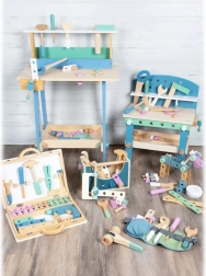 Questo set di costruzioni in legno di alta qualità, in stile nordico, trasforma i piccoli costruttori in veri ingegneri. Con chiave e cacciavite i bambini montano da soli diversi modelli – dai veicoli alle semplici strutture – e li smontano con la stessa facilità. Le venature visibili del legno, abbinate ai colori pastello, stimolano i sensi e rendono il gioco piacevole e sicuro.