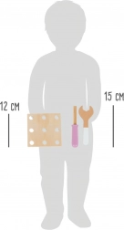 Lavorare con la chiave e il cacciavite allena la presa, la coordinazione mano-occhio e la pazienza. Attività ideale per i piccoli tuttofare che vogliono «davvero» lavorare con gli attrezzi.