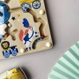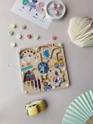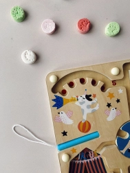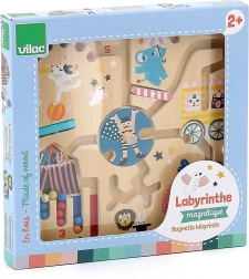 Il labirinto magnetico VILAC porta ai bambini dai 2 anni il mondo del circo nei delicati colori di Michelle Carlslund. Con una penna magnetica spostano le palline lungo i percorsi, incontrano acrobati, animali e clown e alla fine riportano ogni pallina al posto giusto in base a colore e numero. Il gioco sviluppa naturalmente concentrazione e pazienza.